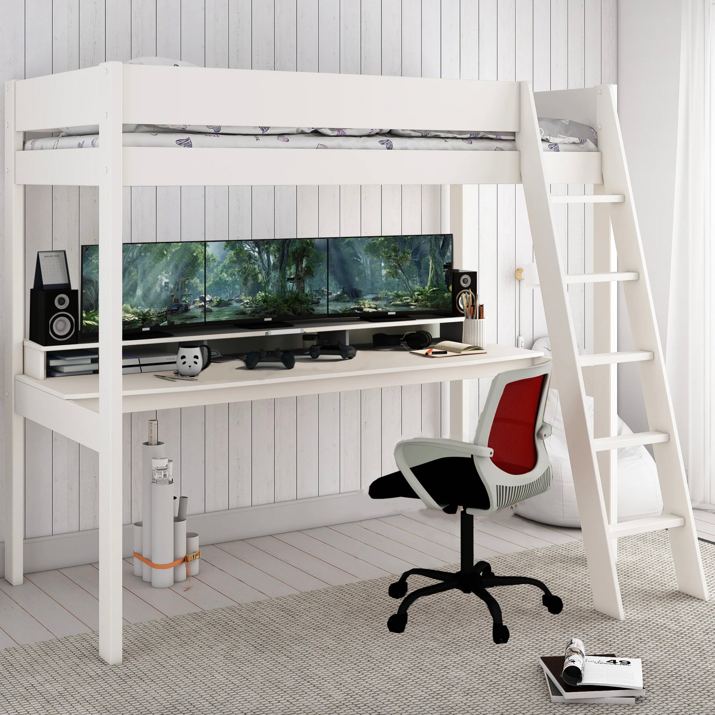 White High Sleeper Console Gaming Bed with Built-In Gaming Desk - Noah from Kids Avenue