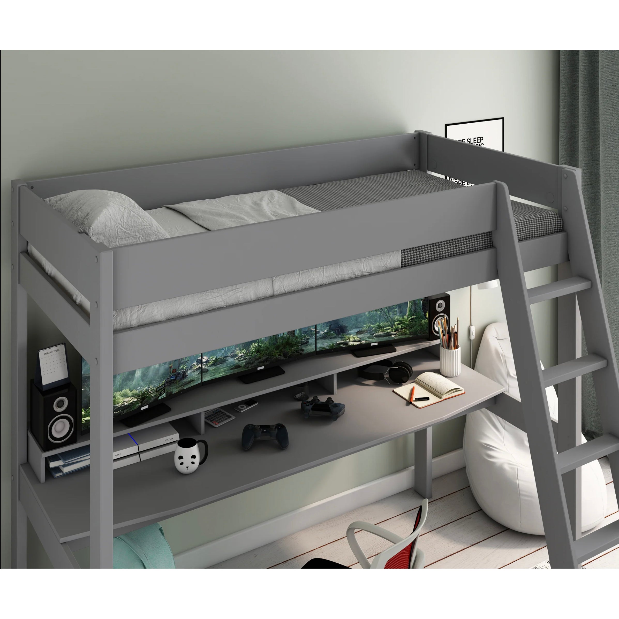 Grey Highsleeper Gaming Bed Kids Avenue Estella