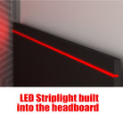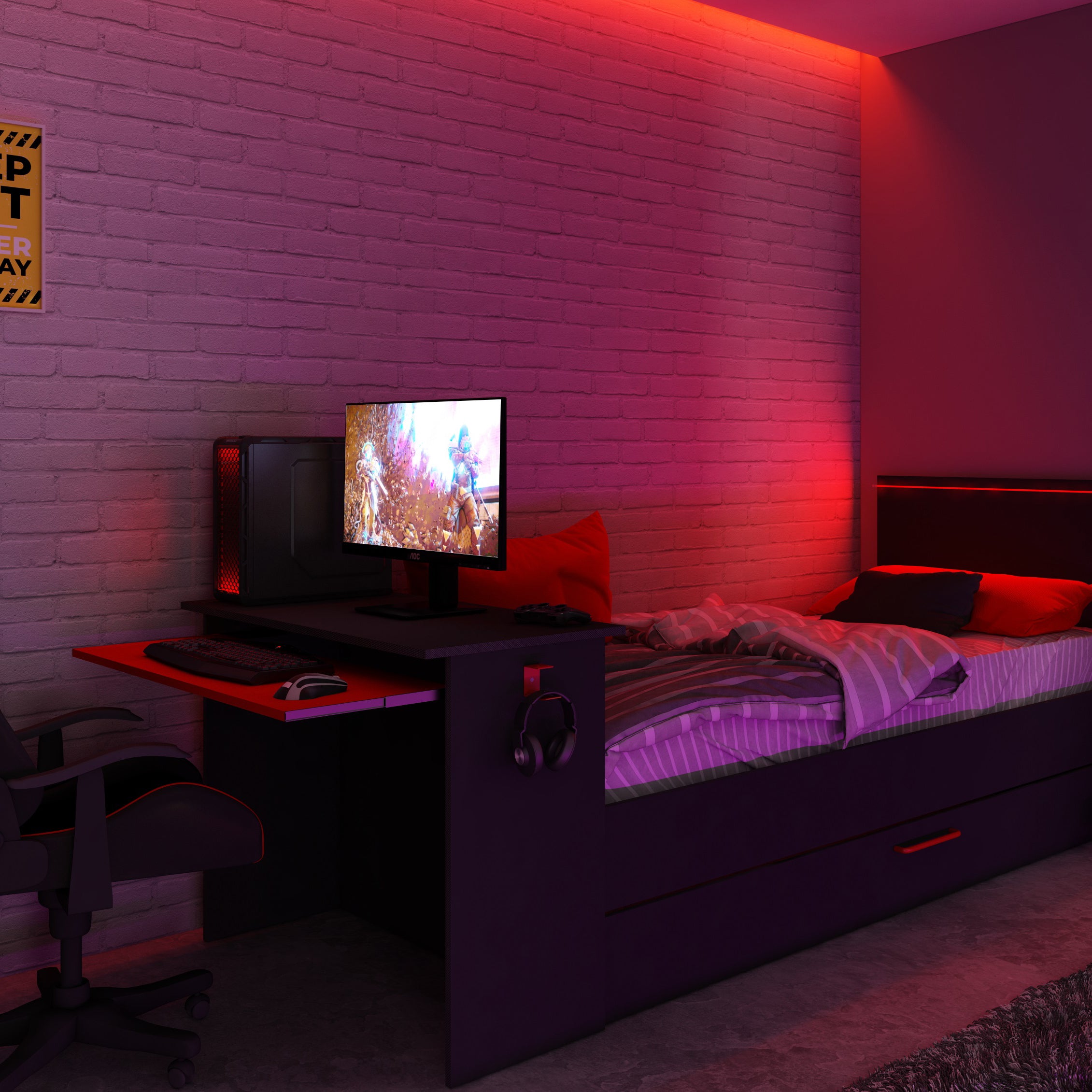 This innovative gaming loft bed includes a spacious desktop with an elevated monitor shelf, plus a large pull-out keyboard tray on smooth runners. For an extra touch of style, there’s also an integrated LED strip light built into the headboard.
