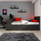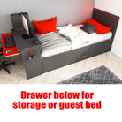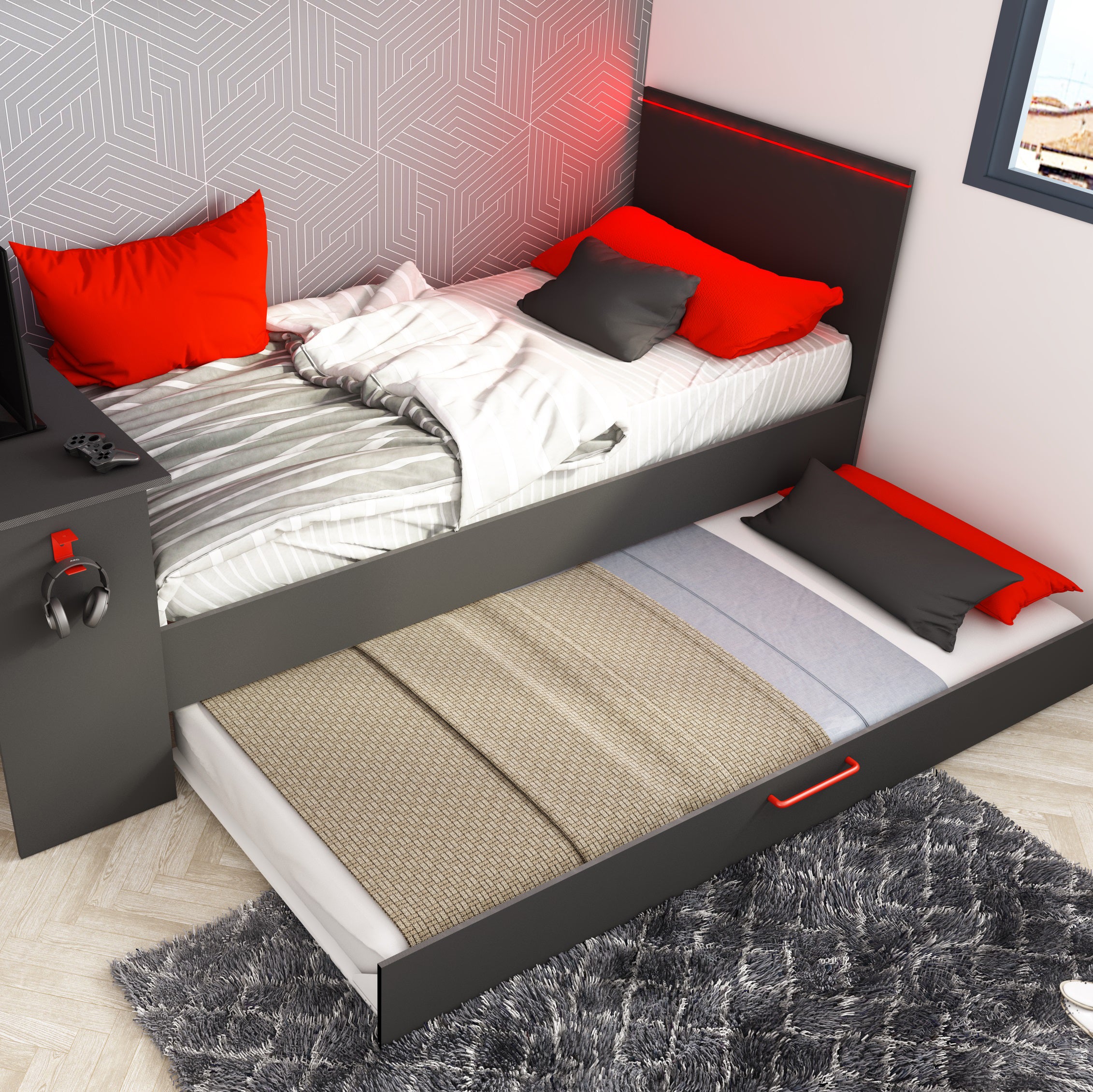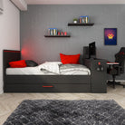 Introducing a brand-new single gaming bed from one of Europe’s leading furniture manufacturers! Part of the popular Trasman collection, this stylish bed has been specially designed for gamers. Finished in sleek grey with bold red detailing, it brings a modern, dynamic look to any bedroom. It’s the ultimate multi-purpose setup — a place to sleep, relax, study, and game — and thanks to its solid, sturdy construction, it’s suitable for both older children and adults.