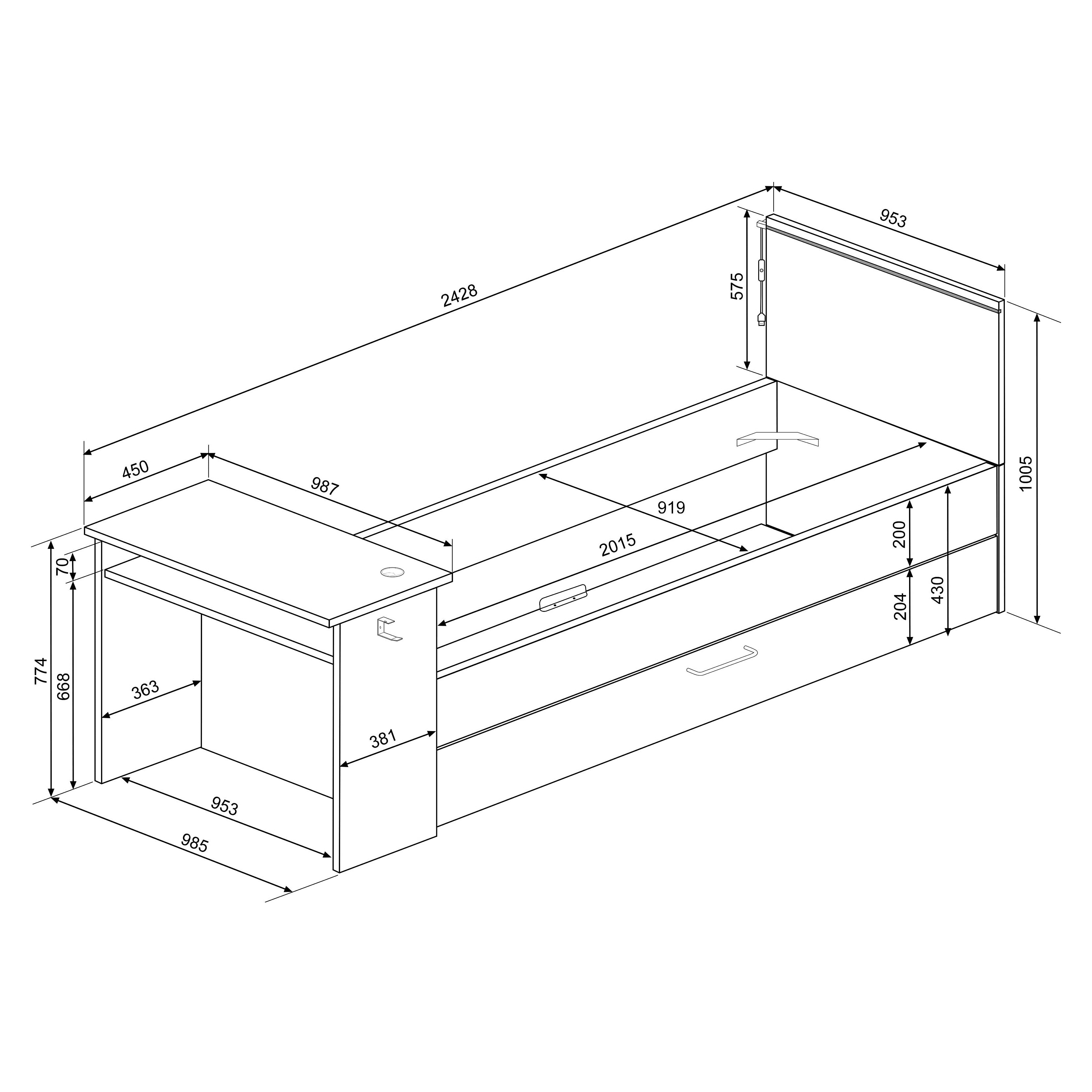 Sofabed option:A large underbed drawer on wheels provides generous storage space. Add an optional trundle mattress to transform it into a comfortable single guest bed — perfect for sleepovers.