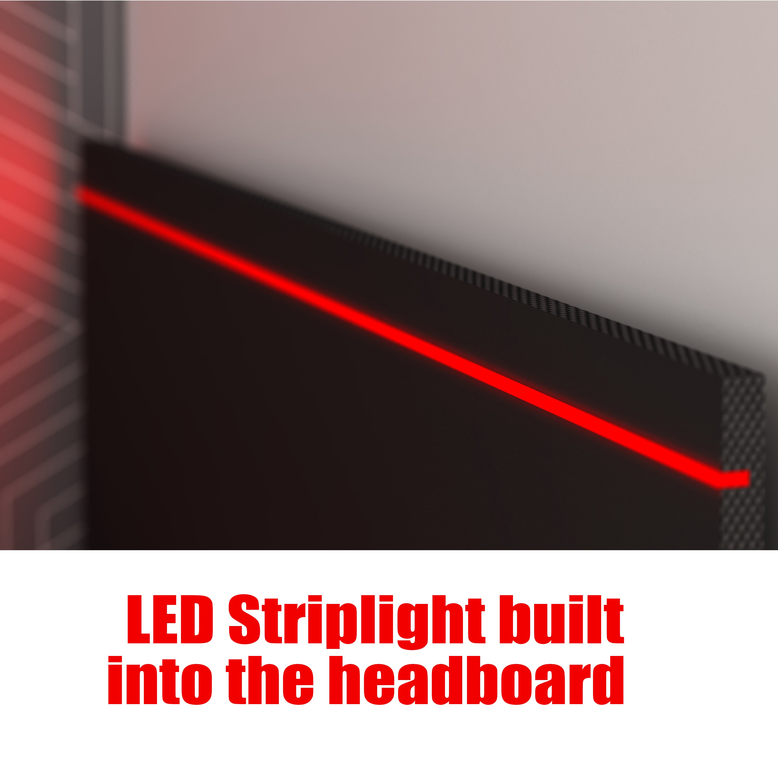 Crafted from high-density particleboard with a grey and red finish and carbon fibre edging, this bed is built for both durability and style.