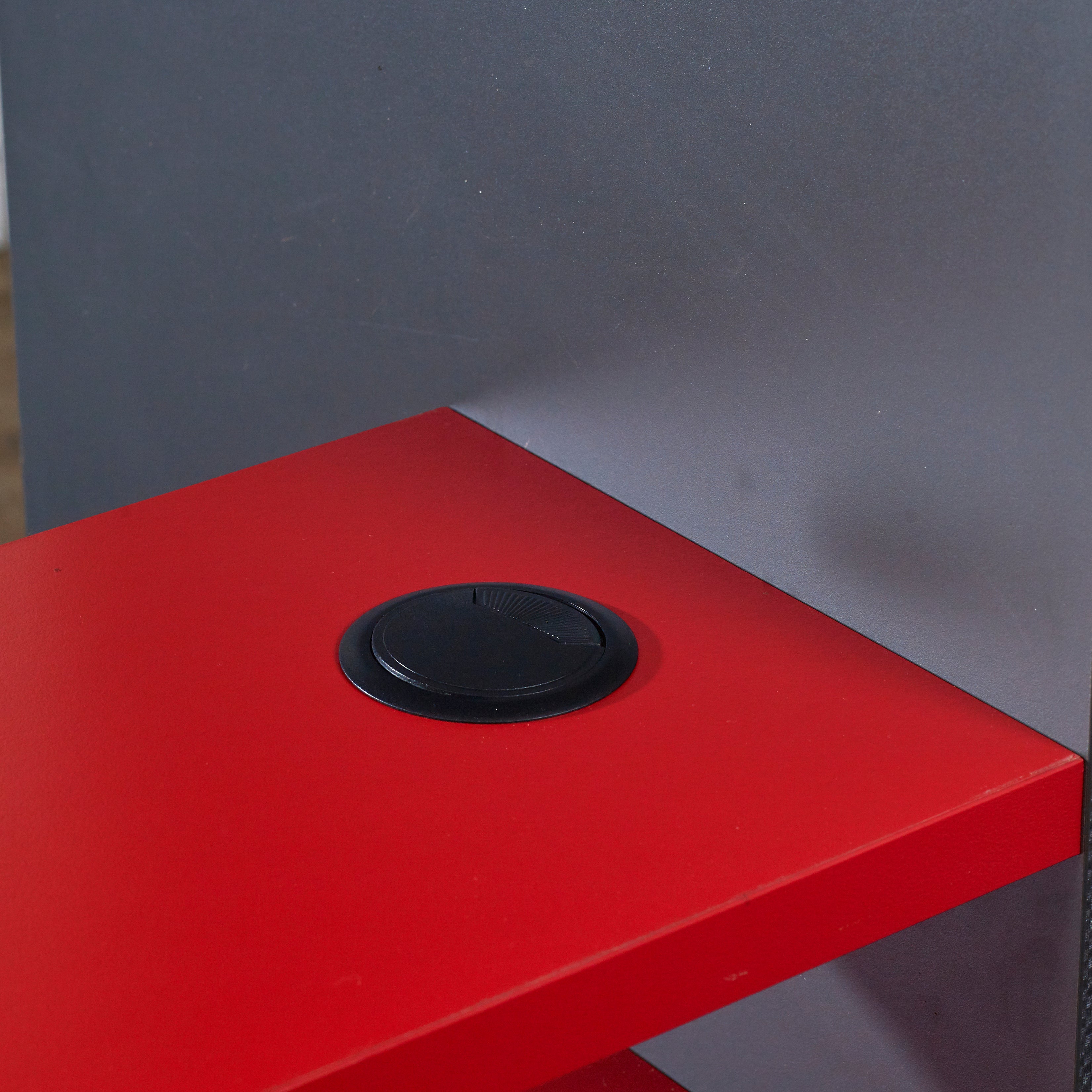 Crafted from modern high-density particleboard in a sleek dark grey and red finish, this range exudes contemporary style.