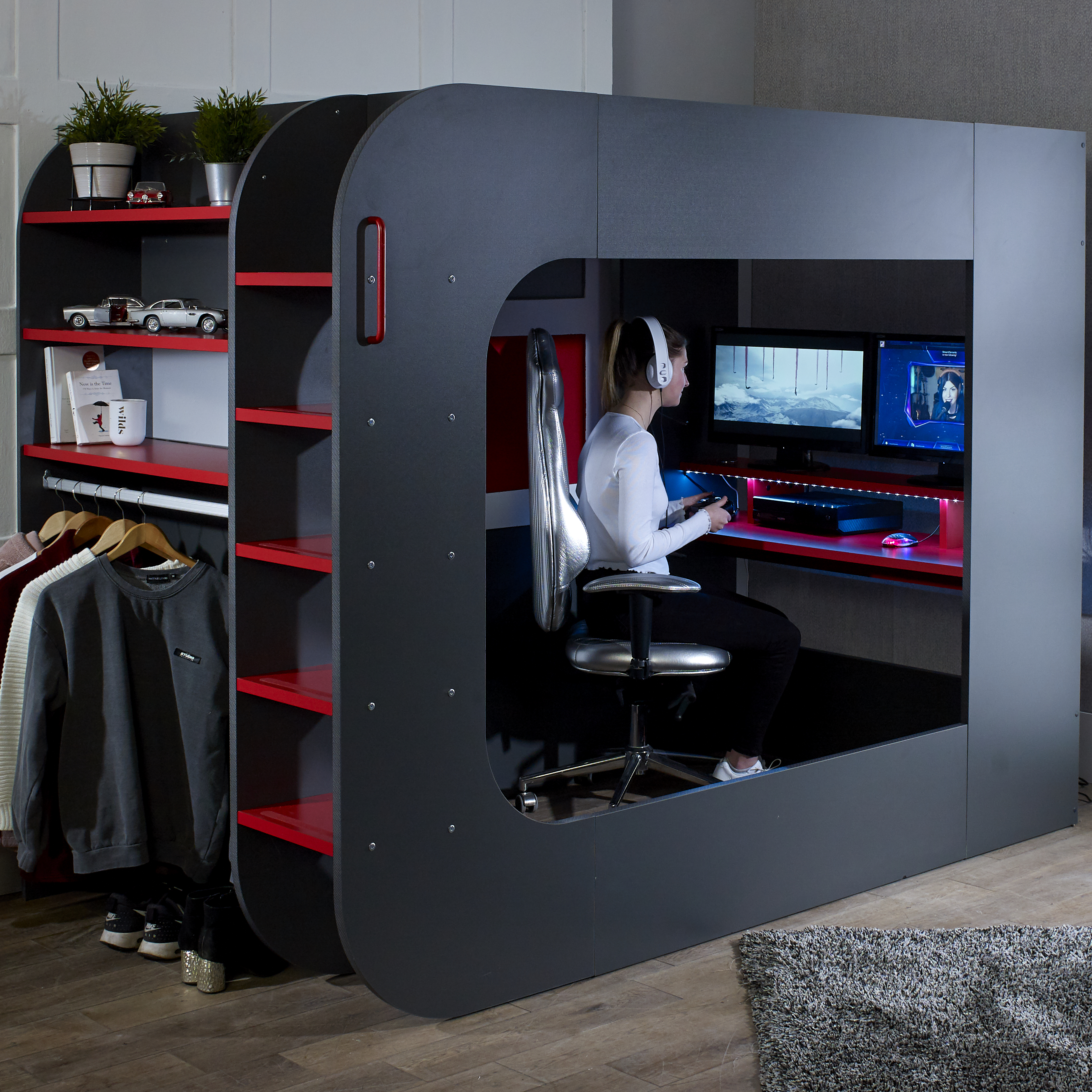 Podbed Gaming Bed (Double & Small) with Built-In Gaming Desk, Storage & Open Wardrobe - Podbed from Trasman