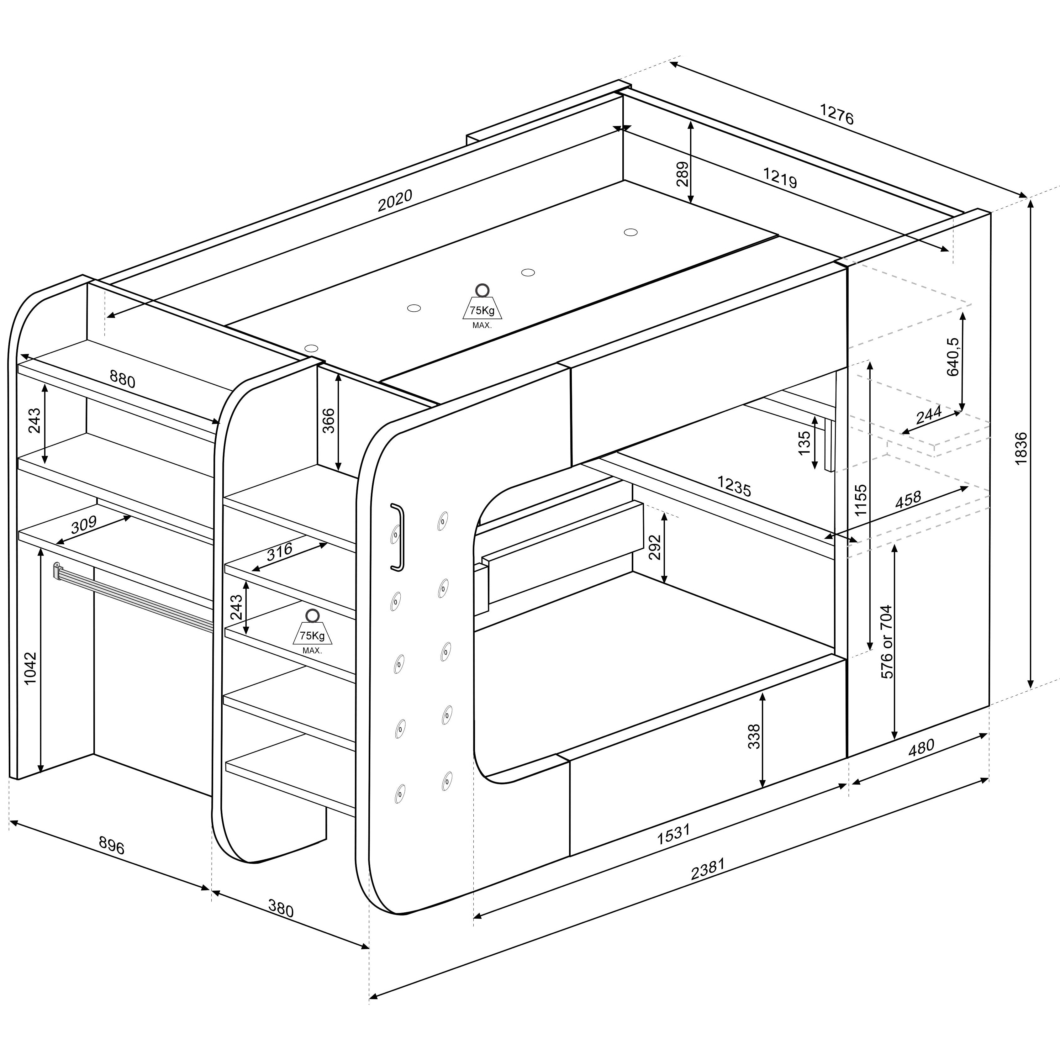 NB: It is recommended for all elevated beds that the maximum depth of any mattress for the top bunk is 15 cm.