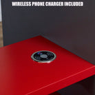 Additionally, a wireless phone charger unit is included, ready to be set up for wire-free charging of compatible phones, complete with a USB port for added convenience.